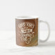 "God Vibes och Hett kaffe" i dekorativ handstil på en snurrande agatdesign som innehåller bruna nyanser som kan tas med kaffe och dekoration. En perfekt för kaffet älskare i ditt liv.
