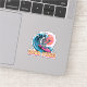Det här klistermärket visar en våg med en skelettsurfare och frasen "God Vibes". Det är idealiskt för att fånga surfer stil, strandviber och sommartid äventyr.