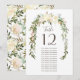 Kort för bordsnummer av elegant och snyggt med en förteckning över gästernas namn med vattenfärgade blommor i nyanser, med lavish grönt foliage. Designad för att samordna med vår uppsamling i bröllop av "Ljudande Blommigtar".