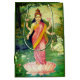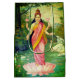 Lakshmi framställs i den indiska konsten som en elegant utklädd, välståndsduschande, gyllene färgad kvinna som står eller sitter i padmasana på en lotus tron, samtidigt som hon håller ett lotus i handen, symboliserar förmögenhet, självkunskap och andlig frigörelse. Hennes ikonografi visar henne med fyra händer, som representerar de fyra aspekter av mänskligt liv som är viktiga för hindukulturen: dharma, kāma, artha och moksha.