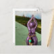 Fotografi av Angelandspot av en vacker lila gudinna på en picknic bord framför en flod