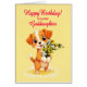 Goddotter Birthday Puppy and Flowers Hälsningskort