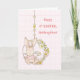 Din guddotter är mycket speciell och på hennes första Påsk kommer det att vara ett bra kort att skicka henne. En bunny är söt sitta på en vinkrans med mjuk rosa mönster bakgrund.