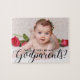 Det moderna fotot "kommer du att bli mina gudföräldrars pussel". Design med ett enda foto av baby och kalligrafi ("gudföräldrar"). Perfektens gåva till framtida Godföräldrar.