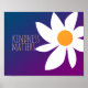 En modern blomsterdesignens motiveringscitat poster att det är vänligt med en ursprunglig vit blomma på blått och lila. . Konst upphovsrätt Ann Powell - alla höger reserverade.