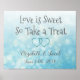 Godisbar Blå bokeh och grå text Kärlek är Söt Affisch söt för bröllop eller baby shower.