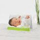 Tillfoga din bebis foto, specificerar och ett personligt meddelande till detta snyggt och färgrika födelsemeddelandekort.