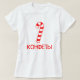 godispinne och en text i ryss: конфеты det kan vara översätter: godis. Du kan skräddarsy denna vitt-skjorta för att ändra den typsnitttyp, stilsortsfärg, t-skjorta typ och t-skjorta färg och ger den som du äger unik look.