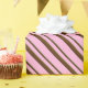 Diagonala godisrandar av mörk choklad - brunt på en rosa bakgrund för ljus jordgubbe som slår in papper