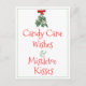 NewParkLane - Romantisk julkort, med söt, citat 'Godisstav önskningar & Mistel kramar' i ljust röd script typografi, med en vacker mistelgren.
