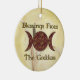 En cirkel med två crescerande måne fylls med vintern löv i , , orangar och golder och orden "Blessings från gudinnan".