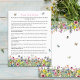 Det här "Pass the Dikt"-spelkortet för babyskor har en vacker utformning av skarpt färgad av ömtåliga vilda blommor med fjärilar, humla och ladybuggar. Du kan anpassa all text efter dina specifika behov. Kontakta designern för eventuella matchande produkter som inte är tillgängliga.