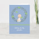 Godmoder-visitkort från pojke. Utformningen är en utandning med fjärilar, och en illustrerad pojke sitta på en fjäril i utandningsluften. Han bär en vit tuttskjorta och blöjor. Tack vare designnedskärningar och jargyjpeg för en del av inslag i designen.