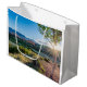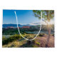 Ett solbränna av strålar brast mellan träd grenar när sol går ner över bergen med piktoppen och gudarna till lämnat en sommarkväll. Tittar du för fler produkter? Besök min butik: http://www.zazzle.com/timelessmomentsphtgy Foto av Jennifer White med timofri fotografi. Alla bilder är upphovsrättsskyddade.
