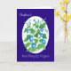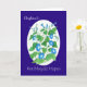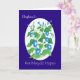 Ett söt Birthday Card för att personalisera, med "Grattis på födelsedagen" på walesiska och briljanta blå morgonglorier, från en vattenfärgsmålning av Judy Adamson.