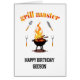 Ett födelsedagskort för en gudon som grillar kärlek. En rökig, mousserande design med ett grillrutnät framför och mitt, flammor stigning i bakgrunden. "Grill master" tar strålkastarljuset, precis som han när han är bakom galler!