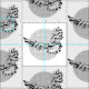 En modern geometrisk illustration av en hawk falk. Den svarta och vita fågeln flyger framför en halvtonsfågel måne.