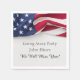 Celebrate your loved one's going-away party in patriotic style! This American Flag “We Will Miss You” party napkin features a bold red, white, and blue border—perfect for military send-offs, basic training, and deployment. Personalize with your hero’s name or message. A meaningful touch for deployment going away and homecoming celebrations. Find matching products in our store collection.