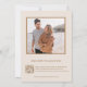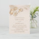 This wedding invitation showcases a minimalist and refined aesthetic, featuring soft, neutral tones and an ethereal botanical design. At the top, delicate, three dimensional floral elements in beige and gold hues gracefully drape across the page, creating a serene and organic feel. The overall color palette is warm and understated, complementing the elegant typography. The names of the couple are highlighted with a subtle contrast of fonts, using a graceful handwritten script for a touch of romance. Perfect for a modern, nature-inspired celebration, this invitation conveys understated elegance and timeless beauty.With your photo and a scannable qr code for your wedding website on the backside.