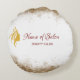 Gold and black Round Pillow . A sleek and minimal Beauty Salon design that brings simplicity and elegance together. Perfect for modern salons, makeup studios, and spa services. Personalize easily to match your style and give your business a polished and professional appearance.