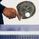 Gold Black Marble Swirl Stone Wedding Monogram Pingisracket