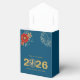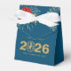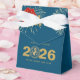 A beautiful Chinese New Year design featuring the number 0 of the year 2026 as a stylized fire horse medallion in gold glitter texture on a dark ocean blue background. Add your favorite treats to the favor box and wish your family and friends good fortune and prosperity for the coming year. You can change the greeting on the back of the card or leave it as it is.