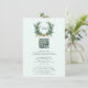 Elegant pine wreath wedding details with QR code. For more advanced customization of this design, please click the DESIGN TOOL BUTTON above!