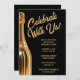 Gold Champagne Bottle on Black New Year's Eve Inbjudningar