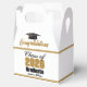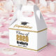 Customize your own gold, black, and white high school Class of 2026 graduate party favor box for a college graduation party. Cool varsity letters for the year on great custom labels for senior gift boxes.