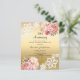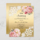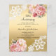 For an elegant and romantic 50th wedding anniversary. A faux gold looking background decorated with pink and rose gold florals, roses and white lace. Personalize and add your names and details.