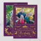 En kollage av festiva former och text som lyder "A Väldigt God jul" i faux guld-folie på lila med plommon. Öppningar för ett foto finns på både framsidan och baksidan. Lägg till din familj namn och året för att anpassa det här visuella helgdag.