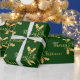 Roligt anpassningsbar grönt julklapp papper med folie av söt guld som ser grov löv och bär