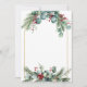 This blank wedding invitation blends elegance and seasonal charm with a gold-framed white front, ready for your custom text. Adorned with festive eucalyptus, pine, and berry accents at the top and bottom, it evokes winter romance and natural beauty. The reverse side features a seamless botanical pattern—perfect for cozy holiday weddings, rustic celebrations, or nature-inspired nuptials.