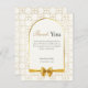 Close your celebration with gratitude using a thank you card wrapped in gold geometric lines and a graceful arch for your message. The warm ivory center, script names, and satin bow detail create a keepsake note that feels as special as the day your guests helped you celebrate. Coordinates with other products from the wedding suite.