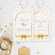 Send guests home with gratitude tied to favor tags featuring the delicate gold geometric pattern, elegant bow, and space for your thank you message. Each tag becomes a golden token of appreciation, echoing the luxurious details of your wedding day while perfectly matching the invitation suite's sophisticated charm. Coordinates with other products from the wedding suite.