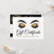 Ett personligt anpassat presentkort för kunder, familj och vänner! Modern glamour för sminkartister, ögonfrans- och ögonbrynsbarer, fristående kosmetologer, stylister och mer! Djärvt i svart och vitt med en touch av guldglitter. Trendar ögonfransar och ögonbryns-siluett-styling för den riktigt speciella salongen!