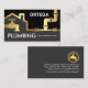 A faux gold home pipe system design demarcates an upper black layer against a lower grey piece; Here lies the business name and a slogan caption option which both you can change. Northwards to the top is your prestigious name.