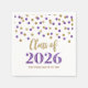 Customizable graduation napkins for class of 2026 with glamorous gold and purple confetti pattern.