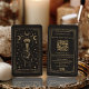 Stand out with this mystical tarot-inspired business card designed for makeup professionals. Featuring a vintage gold hand-drawn illustration of a makeup brush framed by moon phases and stars, this card offers a celestial look that feels both modern and spiritual. The front introduces “The Makeup Artist” in a bold, clean serif font, while the back holds essential contact info and a QR code to your portfolio or booking page. Perfect for glam squads, bridal stylists, and editorial makeup artists looking to leave a lasting first impression. Stylish and functional — it's more than a business card, it's part of your brand.