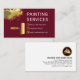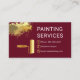 A burgundy colored cover has a gold paint splatter at the top. Beside it is your business name "PAINTING SERVICES" which you can change. Your contact details are located at their respective gold buttons with a gold roller brush.