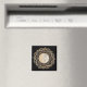 A symmetrical mandala design featuring intricate a yin yang floral pattern in gold and silver.