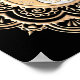A symmetrical mandala design featuring intricate a yin yang floral pattern in gold and silver.