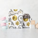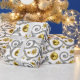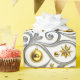 A refined pattern of gold filigree swirls, metallic accents, and delicate silver stars arranged in a seamless repeating layout. The blend of warm gold tones and cool neutrals creates a sophisticated, festive look with timeless charm.