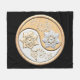 A yin yang symbol is adorned with intricate floral patterns and leaves. The design features a harmonious blend of gold and silver colors.