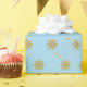 This beautiful sky blue background with gold snowflakes wrapping paper would make any Christmas gift fancy!