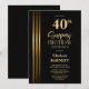 Gold Striped Black 40th Surprise Birthday Party Inbjudningar