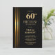 Gold Striped Black 60th Birthday Party Inbjudningar