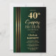 Gold Striped Black Green 40th Surprise Birthday Inbjudningar