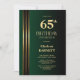 Gold Striped Black Green 65th Birthday Party Inbjudningar