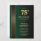 Gold Striped Black Green 75th Birthday Party Inbjudningar